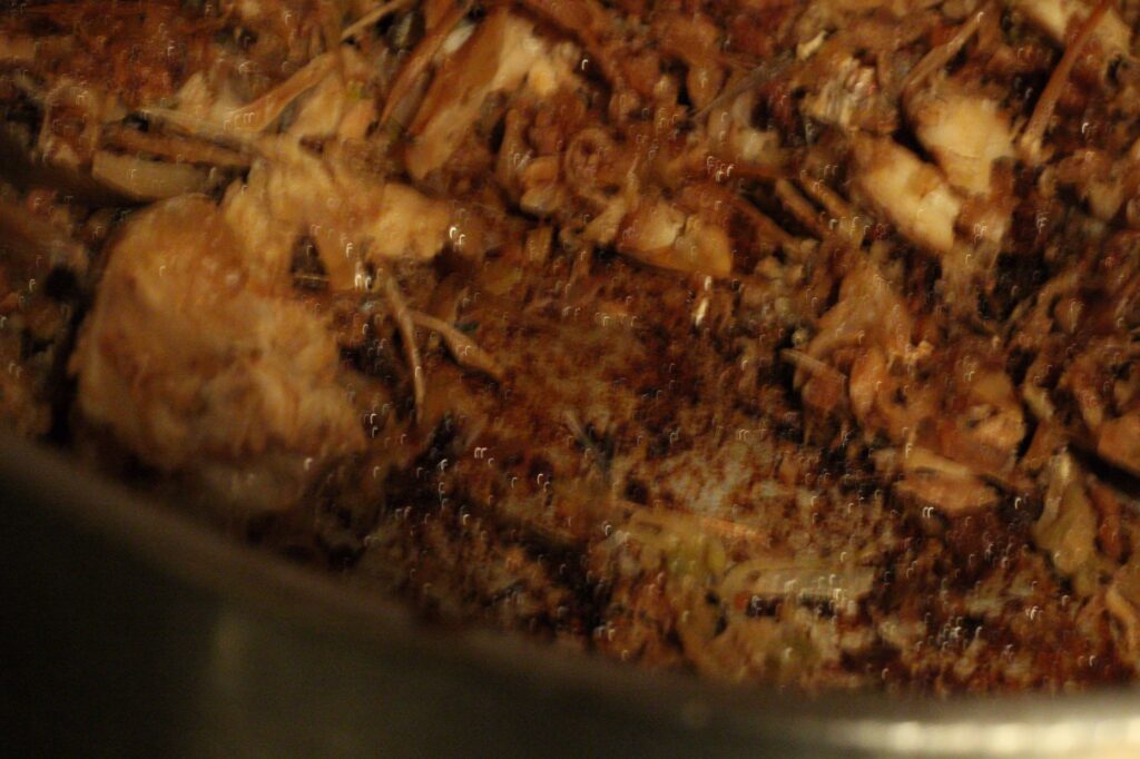 鍋の底で、魚と時間が焦げていく。